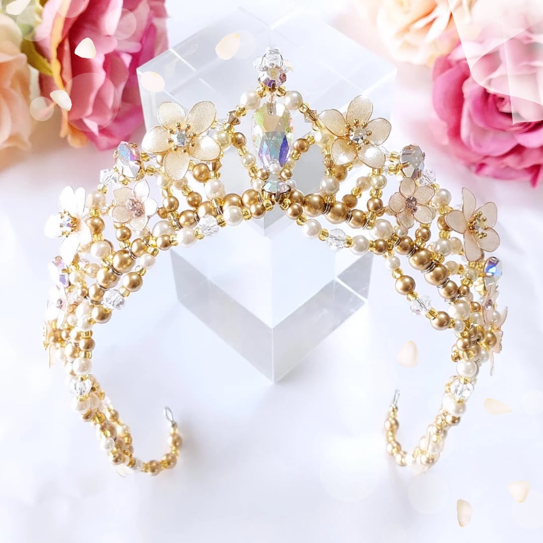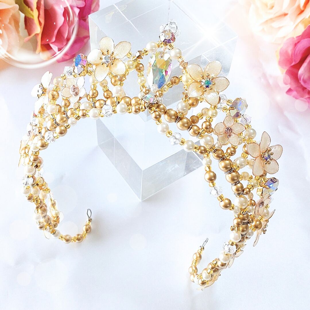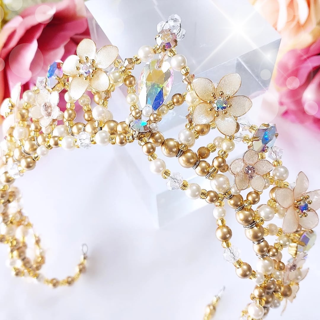 その時の感覚も大切にしながら製作しますので、ビーズやお花の細かな仕様が変わる可能性がございます。世界にたったひとつだけのティアラをお楽しみください❤