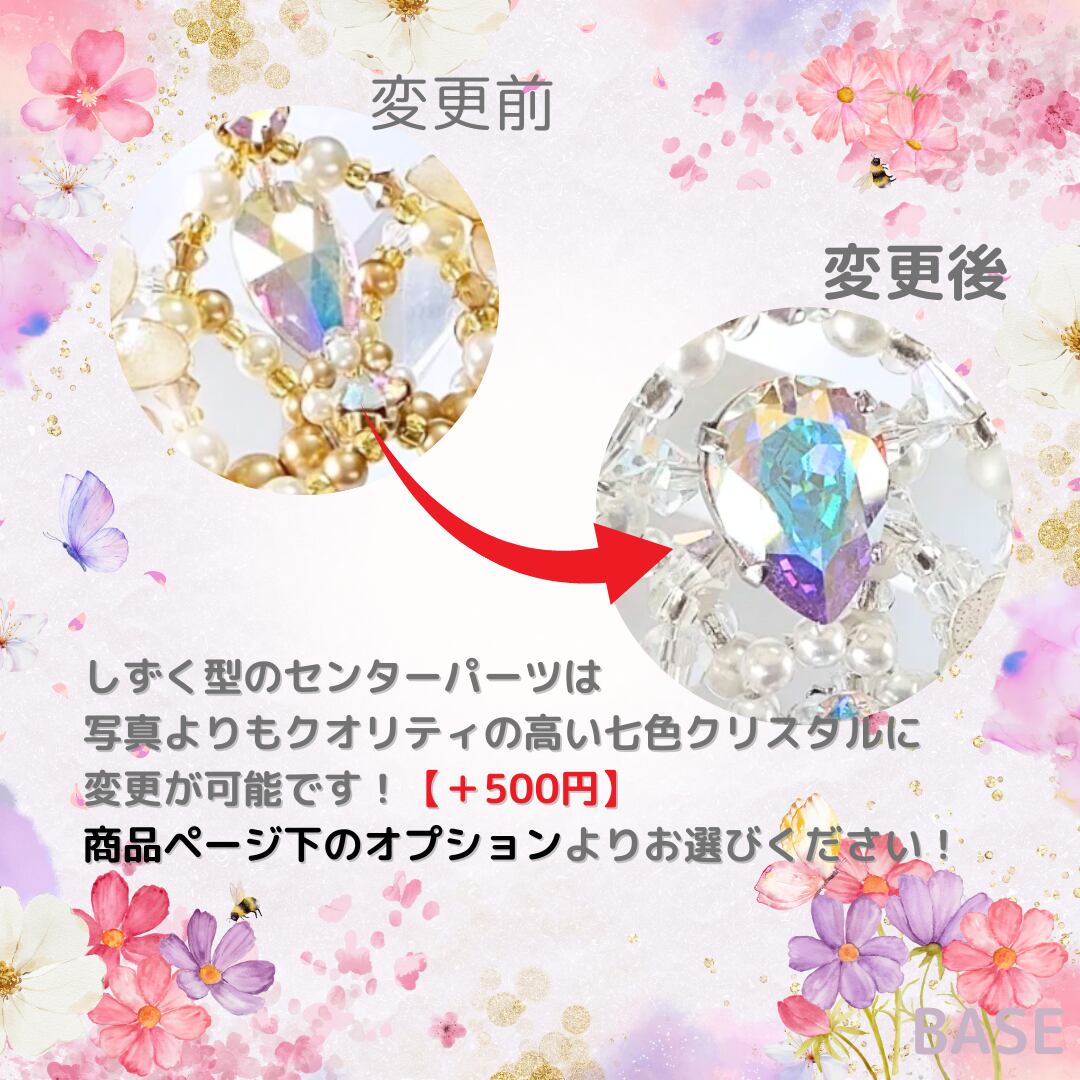 ⭐ビーズやストーン、お花は繊細な作りになっていますので、強い衝撃を受けますと破損する可能性がございます。お取り扱いにはご注意ください。